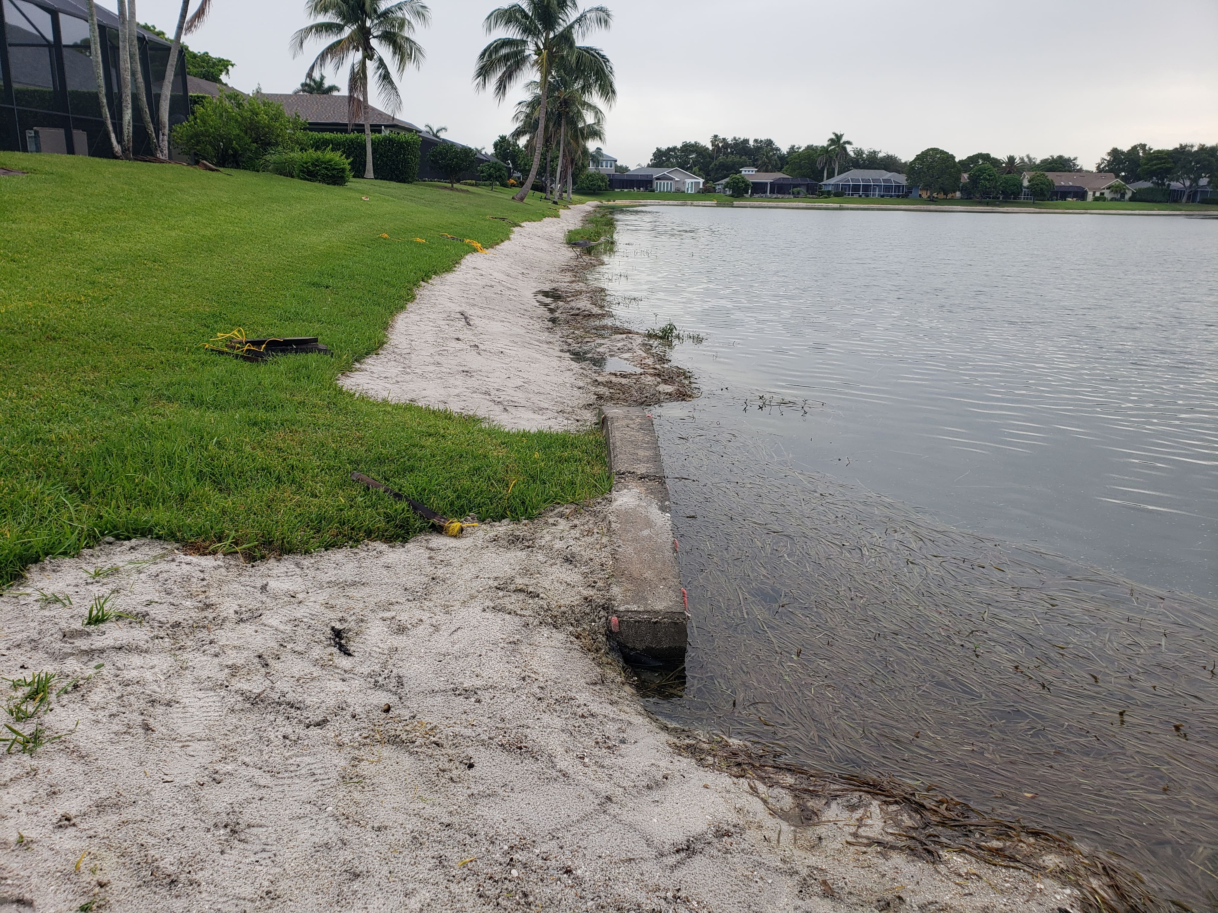 This lake-bank restoration project reversed decades of shoreline erosion and returned long-term stability to a Naples community. After years without major maintenance, portions of the shoreline had retreated as much as 10 to 12 feet, with steep 18 to 24 inch escarpments creating safety concerns for residents and limiting usable space along the lake edge.